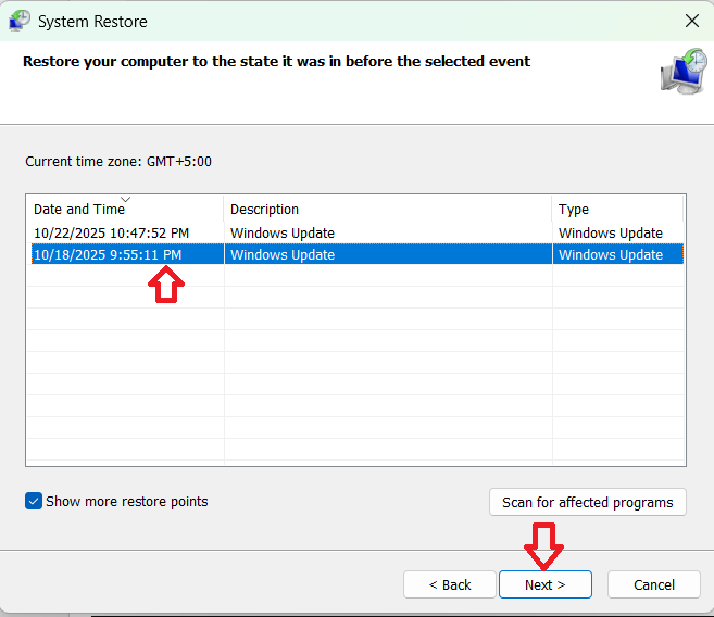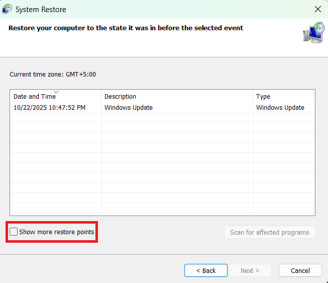 This error often occurs after a system update fails or introduces instability. In such cases, using a previous restore point can bring your system back to a stable state. A restore point is essentially a snapshot of your system’s files, settings, registry, and drivers before any changes were made.