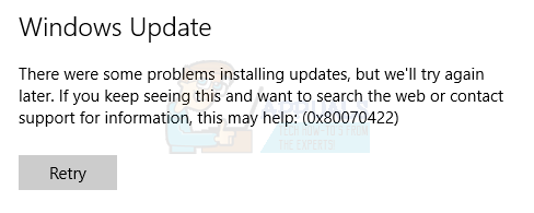 July 14, 2017Fix: Windows 10 Update Error 0x80070422