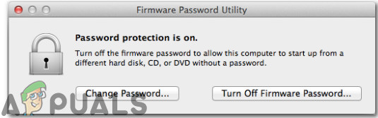 Firmware password utility - Two options would be displayed in front of your screen. The first one stating Change Password and the second one stating Turn Off Firmware Password. From these options, choose to turn the Firmware Password to OFF.