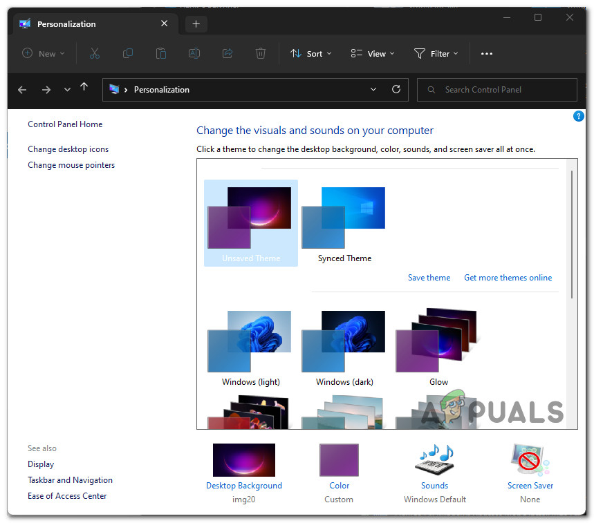- Incompatible taskbar theme – An underlying setting might produce this behavior if you previously configured a custom taskbar theme. To fix this issue, change the taskbar theme to a default option. Several affected users have confirmed that this allowed them to fix the issue.
