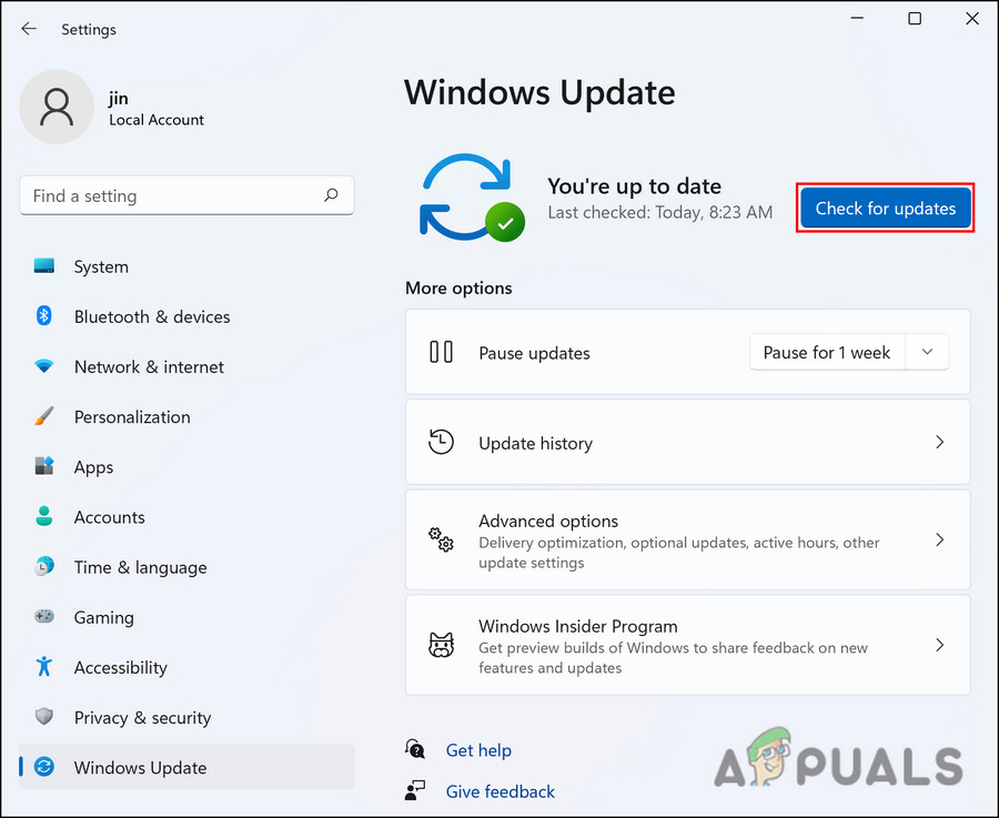 - After opening the Windows Update pane, choose Check for Updates from the option on the right.