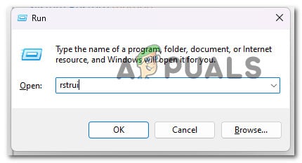 - Launch the Run dialog box and type “rstrui” to launch the System Restore wizard.