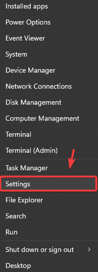 - Right-click the Start Menu and select Settings to open it.