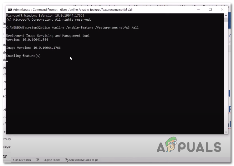 Installing .NET framework - Now In Command prompt Copy and paste the following command. dism /online /enable-feature /featurename:netfx3 /all