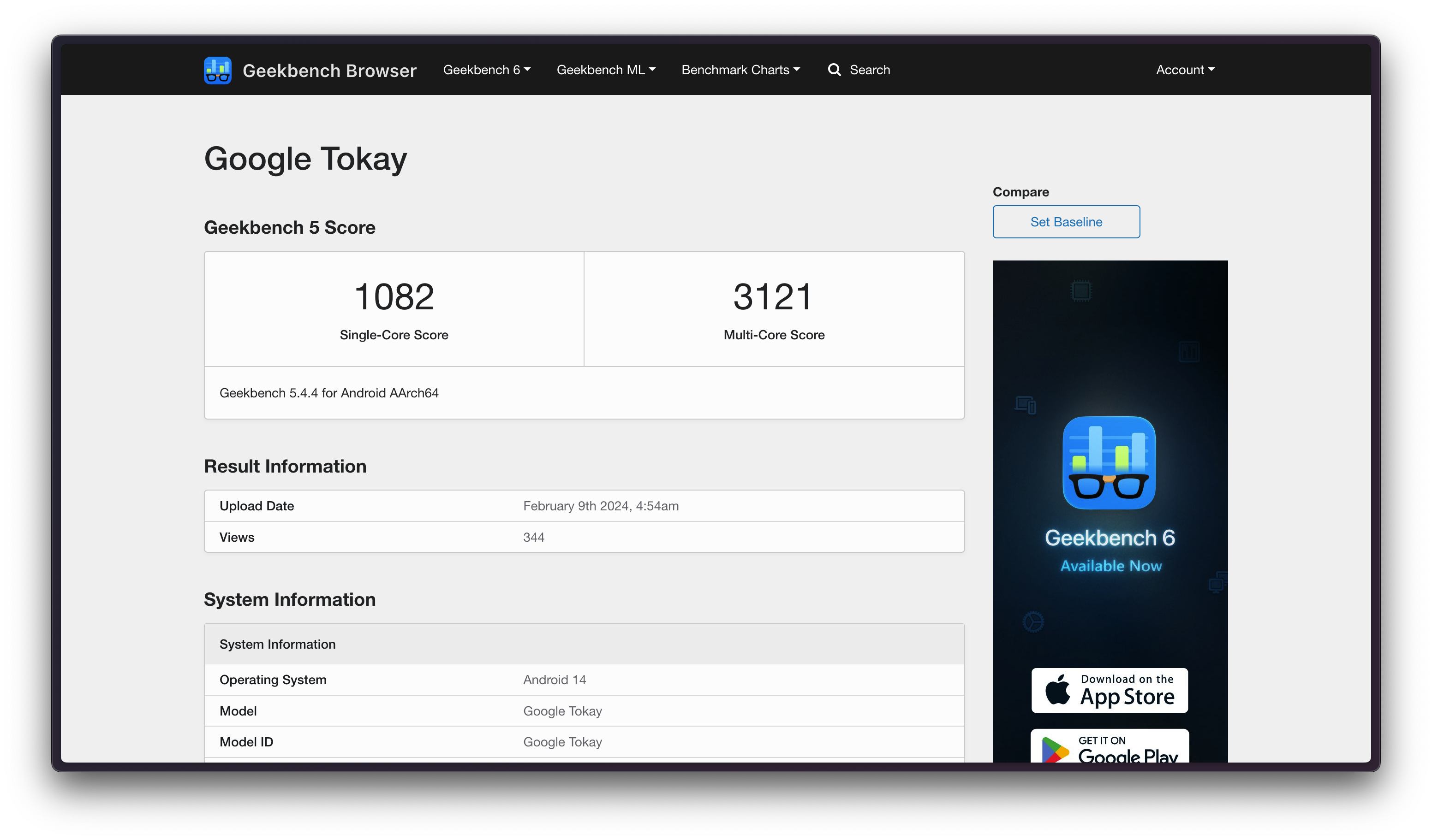 On Geekbench 5, a Google device, codenamed Tokay, was spotted by Quadrans Muralis on X with discouraging performance numbers. The SoC scored 1082 on Single-Core, with 3121 points on Multi-Core. Now, it is important not to confuse these numbers with Geekbench 6 scores that are more commonly referenced, but even when recalling the correct comparison figures, this chipset falls way behind.