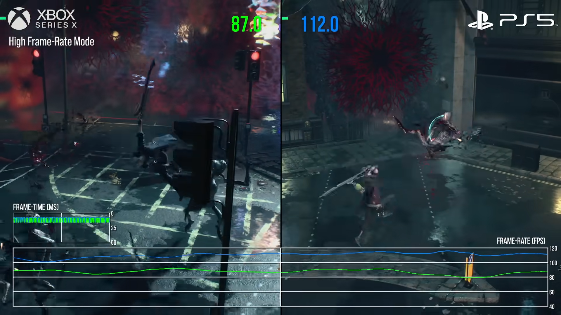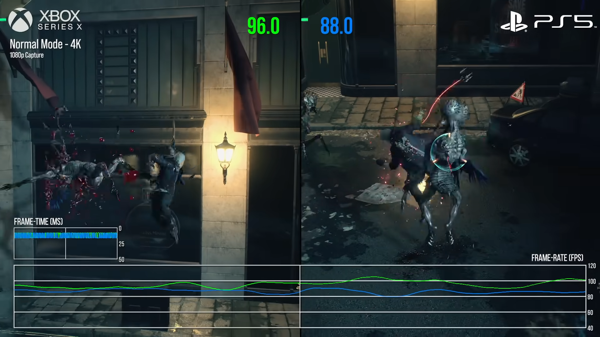 The images attached below are from two different benchmarks conducted by Digital Foundry on Devil May Cry 5: SE, a cross-platform game. This was actually the first true next-gen title that took proper advantage of the high-end specs of both consoles.
