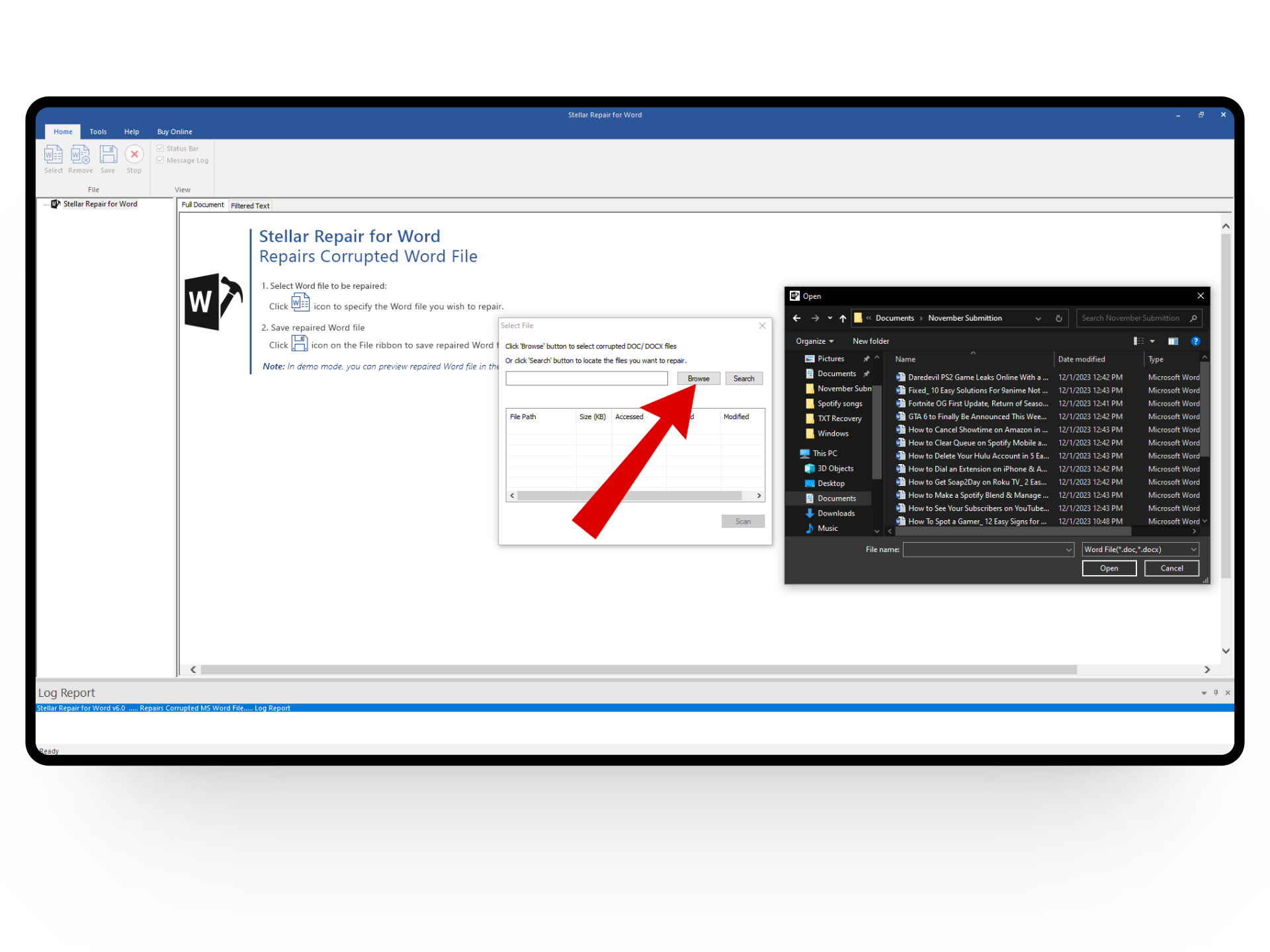 Stellar repair for word - Click on the Browse button to open up the file locater and select your file.