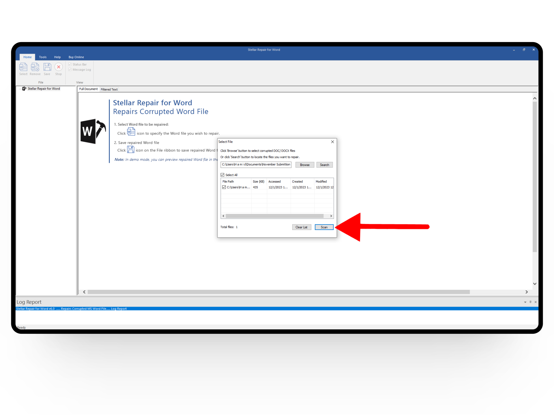 Click on the scan option - Once the process is finished, a preview of your recovered document will open up on your screen.