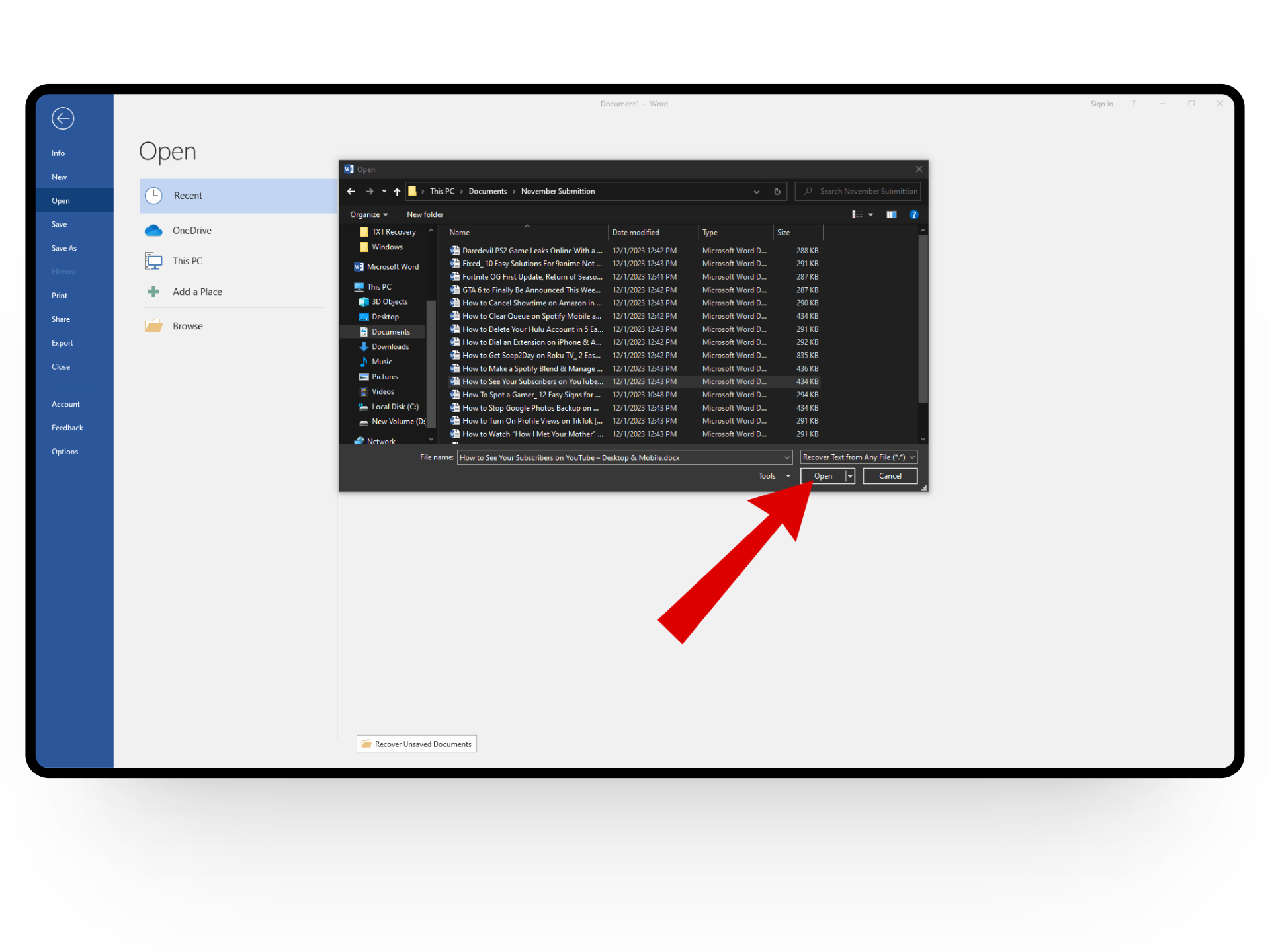 Another way to recover corrupted Word documents is by using the Recover Unsaved Documents feature which allows you to open up temporary auto-saves of your recent documents.