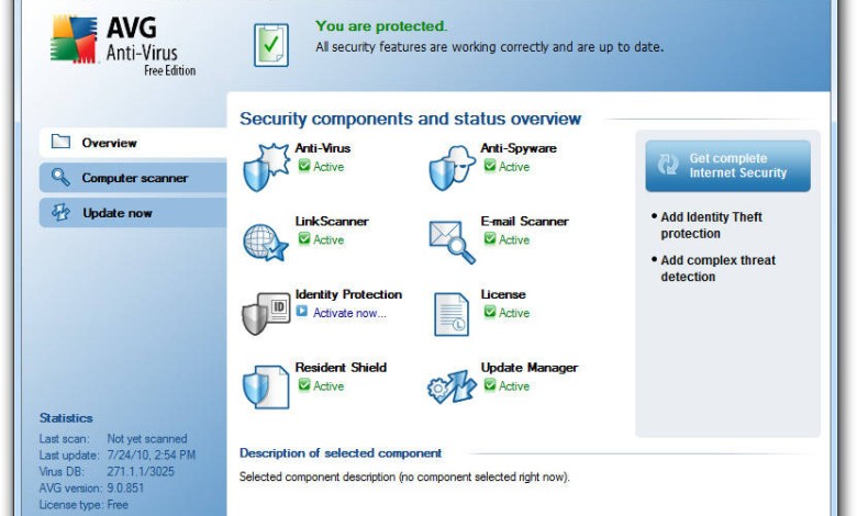 You will also like the intuitive user-friendly AVG interface. It comes with a toolbar from where you can easily access all the important functionalities such as the system status, Resident protection, updates, system analysis among others. The resident protection feature works in cooperation with AVG Email scanner to protect you from possible attacks through your email. They scan every file attachment including those that have already been opened and executed and will immediately block them if found to be malicious.