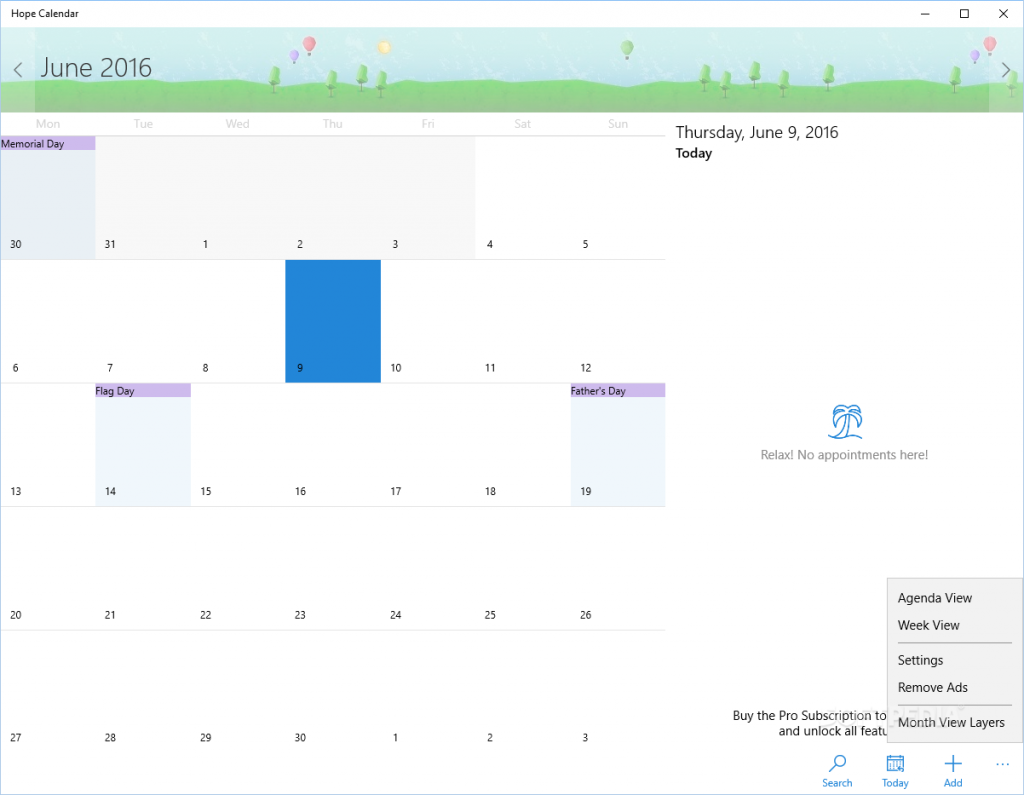 Hope Calendar is a simple and easy to use calendar app designed for the Windows operating system. It is compatible with calendars form various other sources such as Google Calendar, Outlook, Office 365 etc. You can easily create and manage your events and appointments with the help of Hope Calendar. It enables you to view your appointments in the form of Large Live Tiles. You can conveniently get the images of your most prominent days with the help of Hope Calendar.