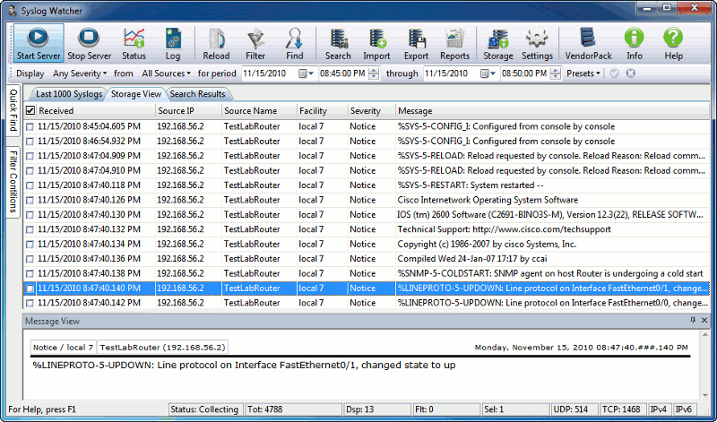 This software was developed by IPSwitch, another popular developer of Network Monitoring tools and it provides an effective way to receive, save and share Syslog data from various devices on your network. The WhatsUp Gold Syslog server allows you to view the log messages live as they are received and also sort them to appear based on their importance.