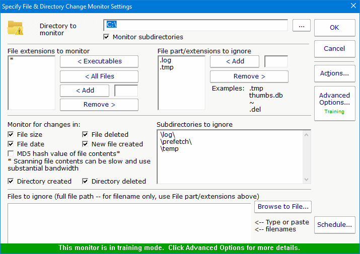 I know that this is a lot of configuration work but once it is set up then it should be good to go. The training feature will make your work a little easier as it enables the tool to develop adaptive behavior towards your settings. For instance, the tool will analyze the file types being added to your Ignore list for a certain period of time after which similar types are added to the list without having to manually do it. You can easily remove any component added to the list if it does not need to be there.