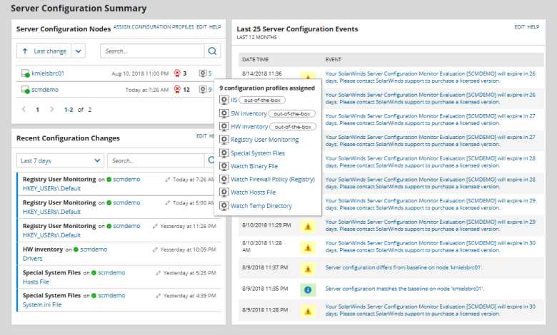 SolarWinds Server Configuration Monitor is by far the most popular tool in our list. And I say this on pure merit not just because it comes from a reputable firm. SolarWinds may have made their name through the Network Performance Monitor but no one can dispute the effectiveness of all their other Network Management tools.