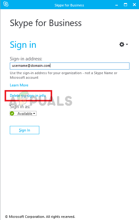 - Lastly, remove the Skype sign-in information as well. On the sign-in page of Skype for Business click on Delete my sign-in info.