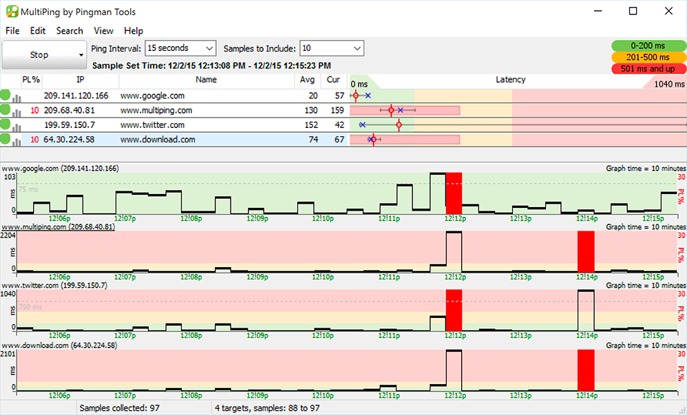 MultiPing is a lightweight software that allows you to monitor either a single or multiple hosts. This software collects the performance data like network latency and packet loss percentage and presents it as graphical visualizations to aid in analysis. An added advantage is automatic alerts for when things are not right in the network.