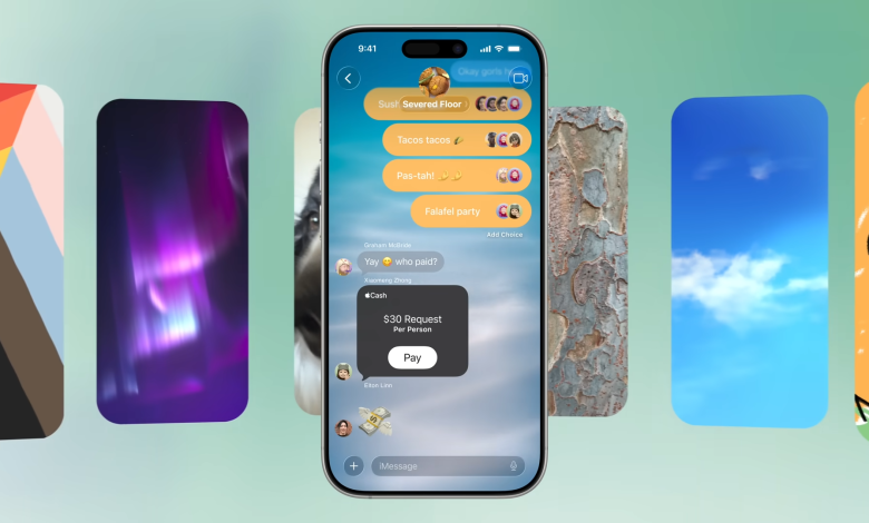 The Messages app also adapts to the “Liquid Glass” aesthetic. But, for proprietary upgrades, it now has the option to set a custom background or even generate one via Image Playground. In group chats, users will now see typing indicators and can post “Polls” to get input from multiple people.