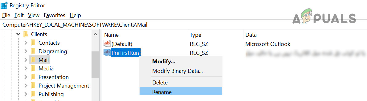- Now, in the right pane, right-click on the PreFirstRun key & select Rename.
