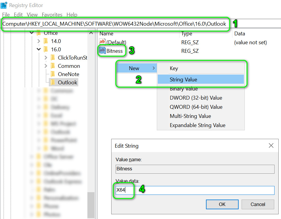 Set Bitness Key Value to X64 - Then reboot your PC after exiting the Registry Editor.
