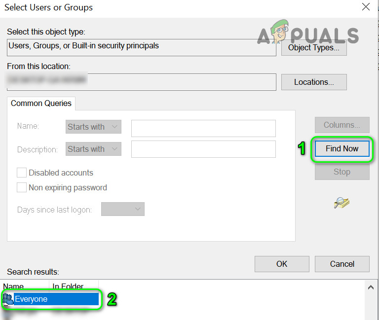 Open the Advanced Permissions Menu - Then click on Find Now & double-click on Everyone.