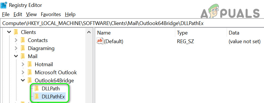 Create New Sub-Key for Outlook64Bridge - Then choose New>>Key & name it DLLPath.