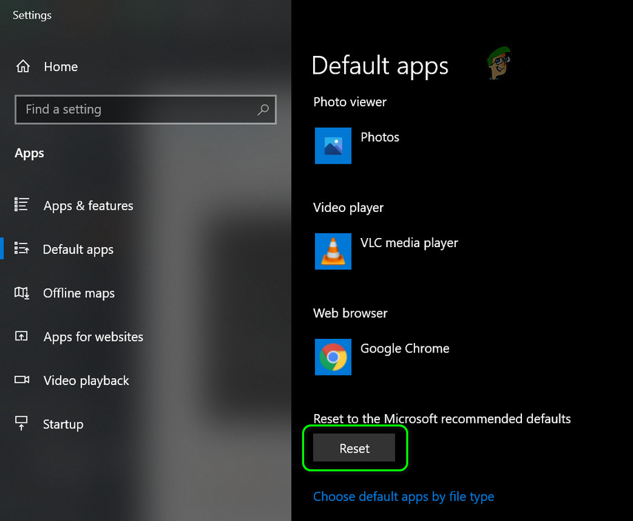 - If not, open Default Apps (step 1) & hit Reset (near the bottom of the screen).