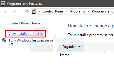- Click View Installed Updates from the top left corner of the window