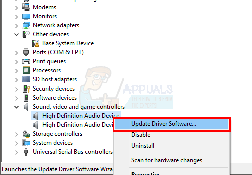 - Locate and right click your audio device driver