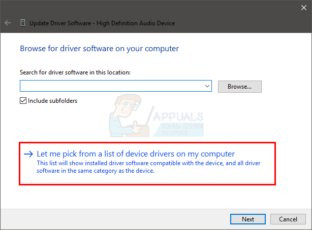 - Click Let me pick from a list of device drivers on my computer