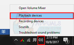 - Right click on the speaker icon at the bottom right corner and select Playback Devices