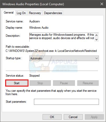 - Wait a little while. Click Start once the service is stopped.