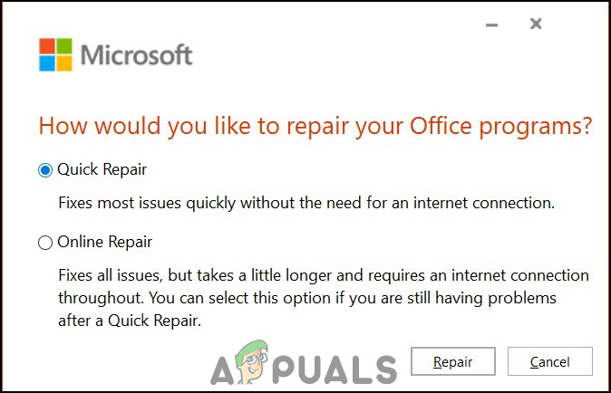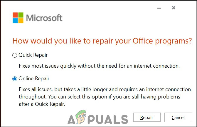 - Depending on the copy of your application follow the relevant instructions. Here we will list the Click-to-run repair instructions.