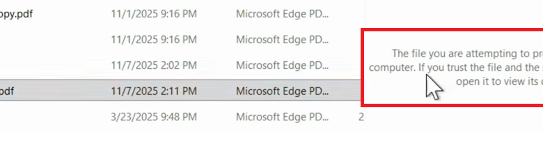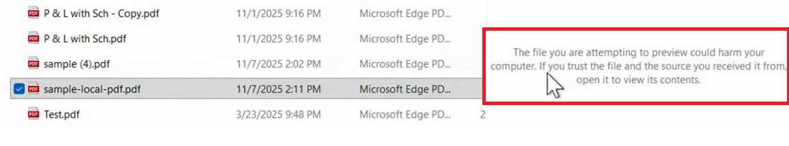 “The file you are attempting to preview could harm your computer.” is a security warning alert in Windows especially in File explorer that appears when you are trying to preview a file such as PDF.