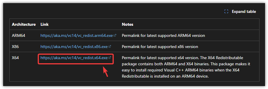 - Open the official Microsoft Visual C++ Redistributable download page.
