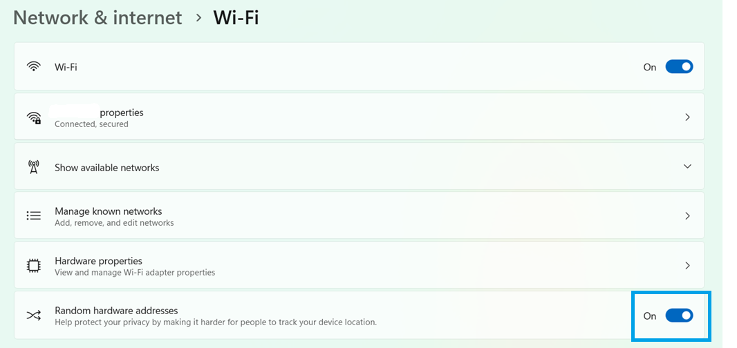 By enabling Random Hardware Addresses, Windows presents a different MAC address to the router, which can make the router treat your PC as a new device. This can bypass old, corrupted, or outdated connection data and help you connect successfully. This setting is commonly used and is generally safe for home and public networks.