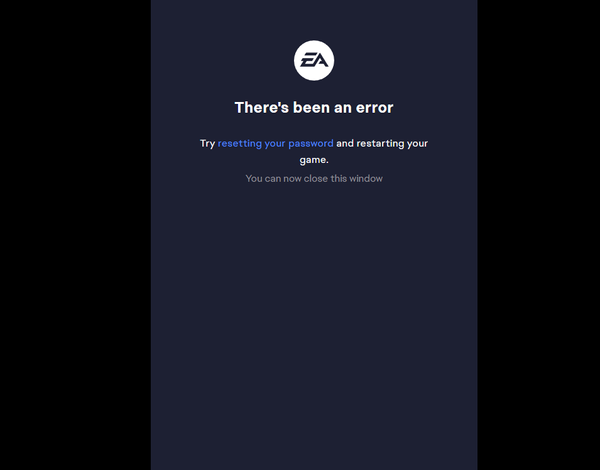 A password reset forces EA to invalidate old sessions and issue a fresh authentication token. It helps most when your session is expired or stuck after security changes.