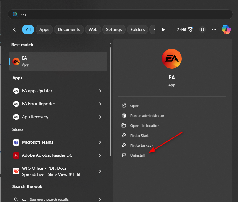 - Uninstall the EA app: Settings > Apps.