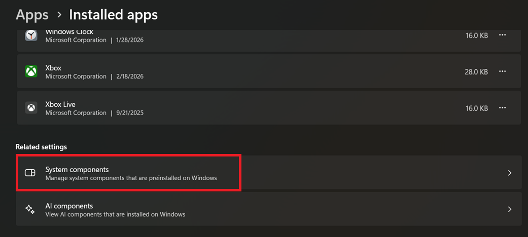 - Find Microsoft Store. On some Windows versions, you may need to open System Components first before locating it.