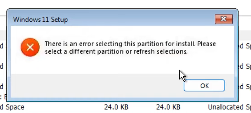During the Windows 11 installation process, you may encounter “Error selecting partition for install” when you click a disk partition in Windows Setup. This blocks the installer from continuing because Setup can’t reliably use the selected partition.
