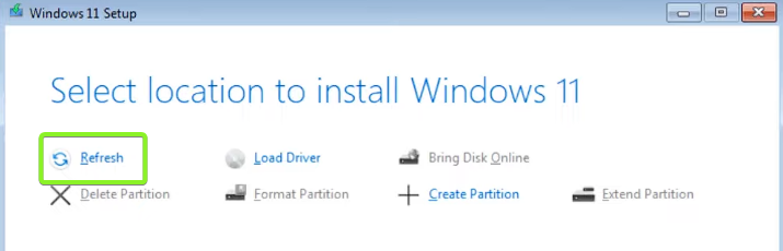 - Close Command Prompt, then click Refresh in Windows Setup.