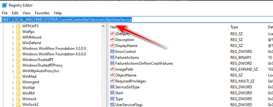 HKEY_LOCAL_MACHINE\SYSTEM\CurrentControlSet\Services\WpnService