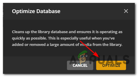 - Unoptimized Plex database – One of the most common causes that will spawn this particular issue is an unoptimized database that is pointing to faulty resources. Fortunately, you can fix this problem easily by performing a database optimization directly from the Server Settings in your Plex account.