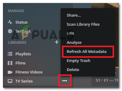 Some users that were previously encountered this particular error have successfully managed to fix the problem by refreshing all the relevant metadata associated with your Plex.TV server. This particular fix has been confirmed to work by a lot of affected users.
