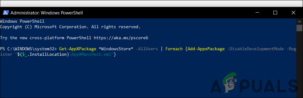 Re-register Microsoft Store - Once Powershell executes the command, restart your PC.