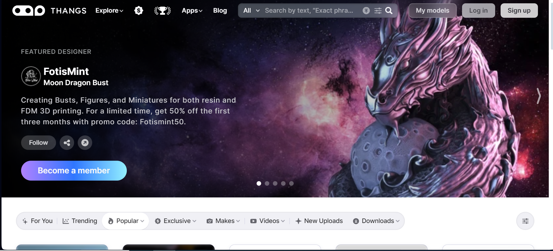 Thangs launched in 2020 and quickly established itself as a versatile Thingiverse alternative, blending advanced search technology with a comprehensive 3D model library contributed by a diverse and active community.