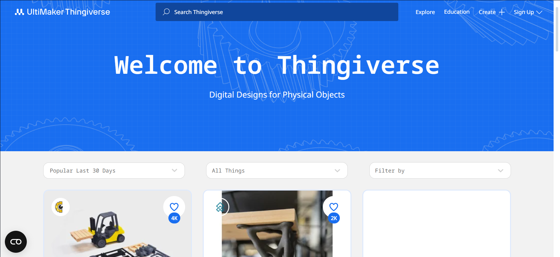 Thingiverse is a collaborative online platform for sharing, discovering, and downloading files for 3D printing physical objects. When it was first established, there were few accessible solutions allowing people to upload or download 3D files across the web.