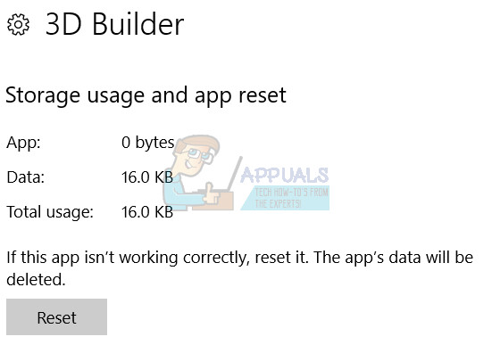 - Wait for the process to complete and the Settings App will tell you the app is reset(You will see a check box that tells app has been reset)