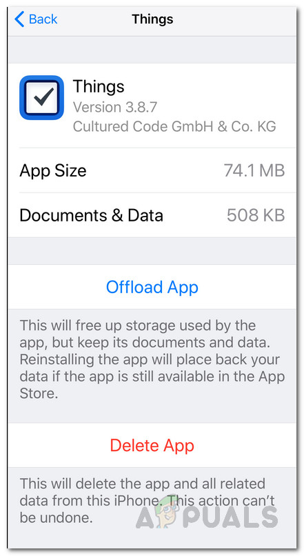 In some cases, offloading an application may not fix your issue. This has been reported by some users and thus you will have to completely delete the app and then install it again. Doing so will also remove your documents and other files so make sure you have backed up anything important. With that said, follow the instructions below to delete an app from your device: