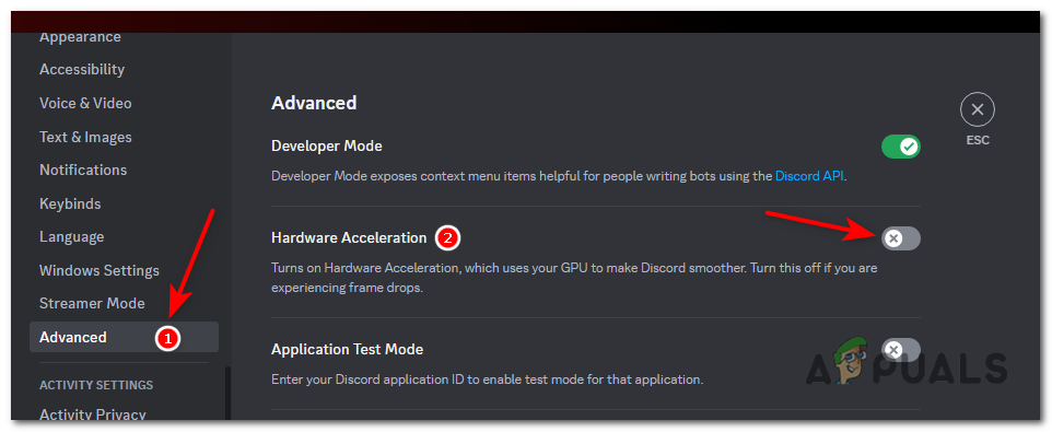 Hardware acceleration is a feature that utilises your system’s GPU to enhance Discord’s performance. However, in some cases, it can cause conflicts and result in errors. To turn it off and fix this error, follow these steps:
