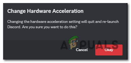 - A prompt will appear, press “Okay” to restart your discord.